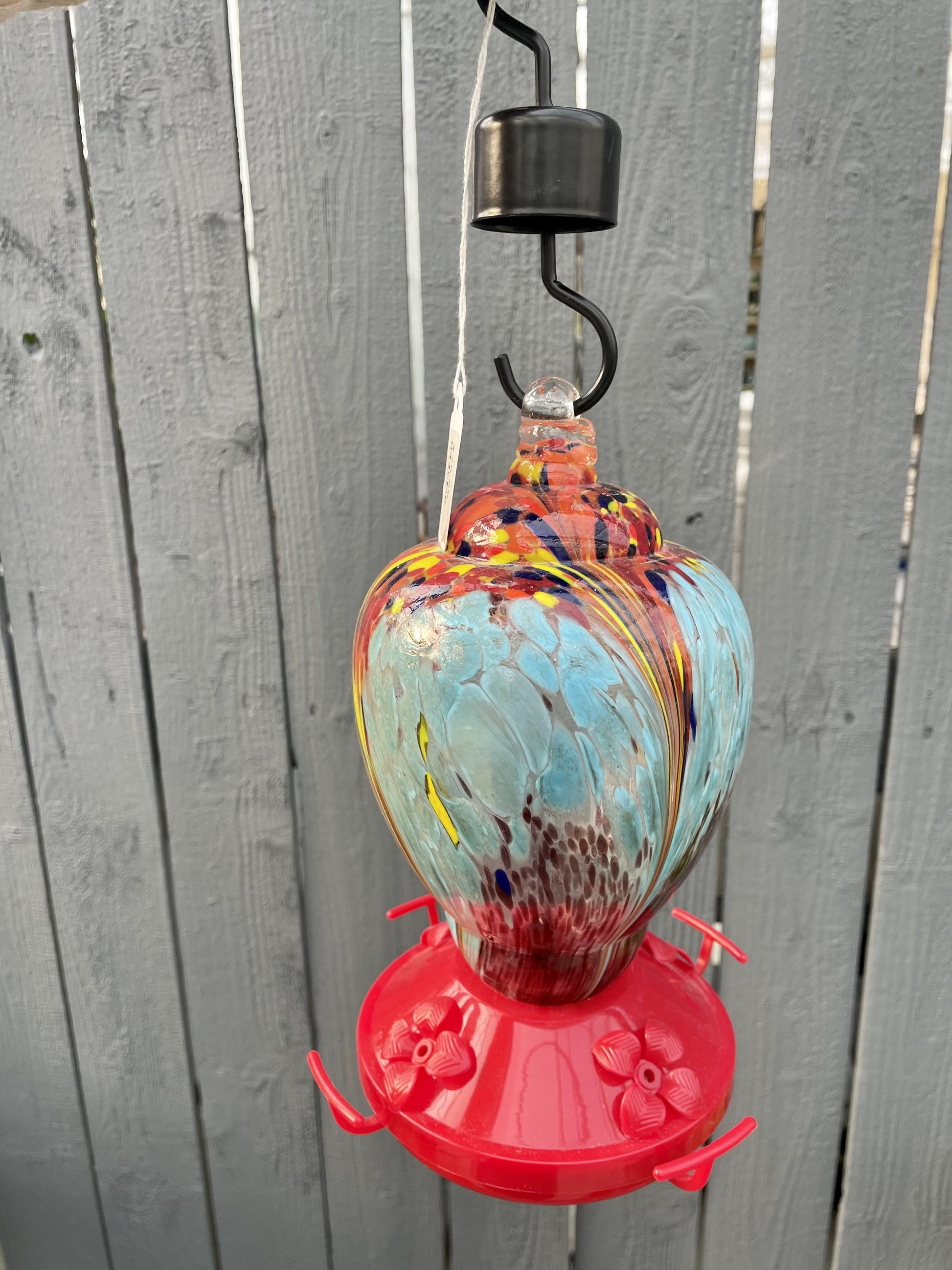 8.5" Blue Glass Hummingbird Feeder
